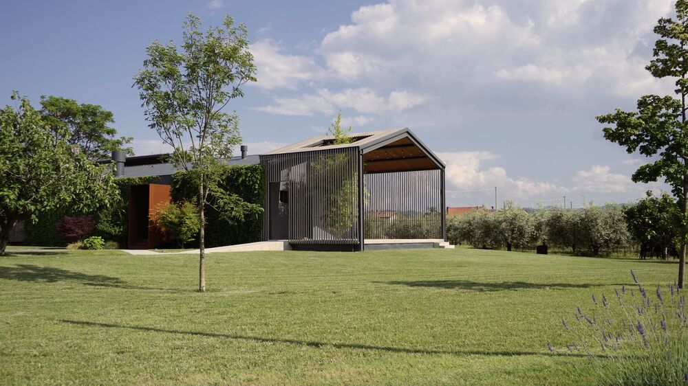 - U šarmantnom ruralnom području Cesene, u podnožju Apenina, nalazi se rezidencija dizajnirana prema standardu Passivhaus, idealu održive arhitekture. Ova zgrada, inspirirana tipičnim seoskim kućama ovog područja, kombinira tradiciju i inovaciju kako bi se savršeno uklopila u okolni prirodni krajolik. Kuća je prizmatičnog oblika obavijena drvenom zaštitom od sunca, koja regulira ulazak prirodnog svjetla i stvara fascinantne igre svjetla i sjene, postajući vizualno prepoznatljivim elementom zgrade.